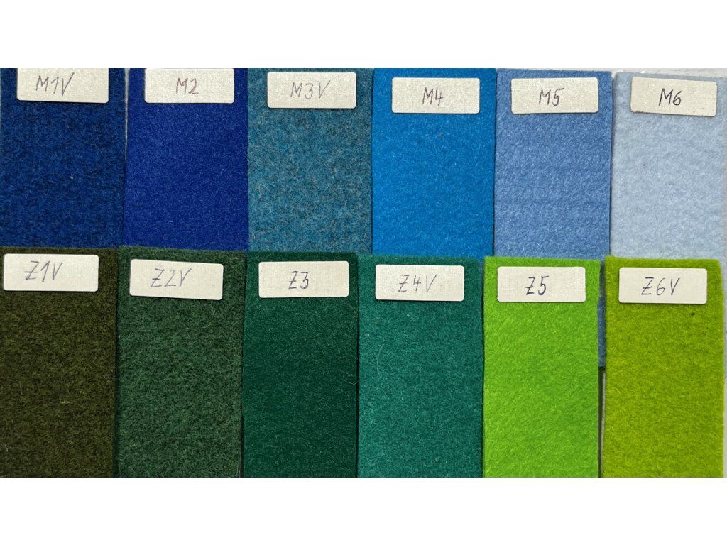 Materiál: filc 3 mm, 100% polyester nebo s příměsí vlny min. 70% - název odstínu obsahuje “V”. Např. Z1V