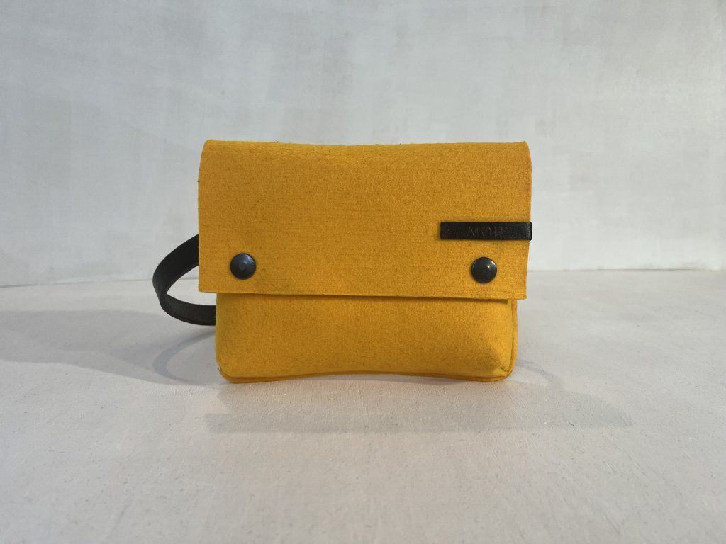 Praktická ledvinka z pevného filcu, kterou lze nosit pohodlně kolem pasu nebo přes rameno. Stylový doplněk, do kterého se vejde telefon, menší peněženka i drobnosti na cesty.