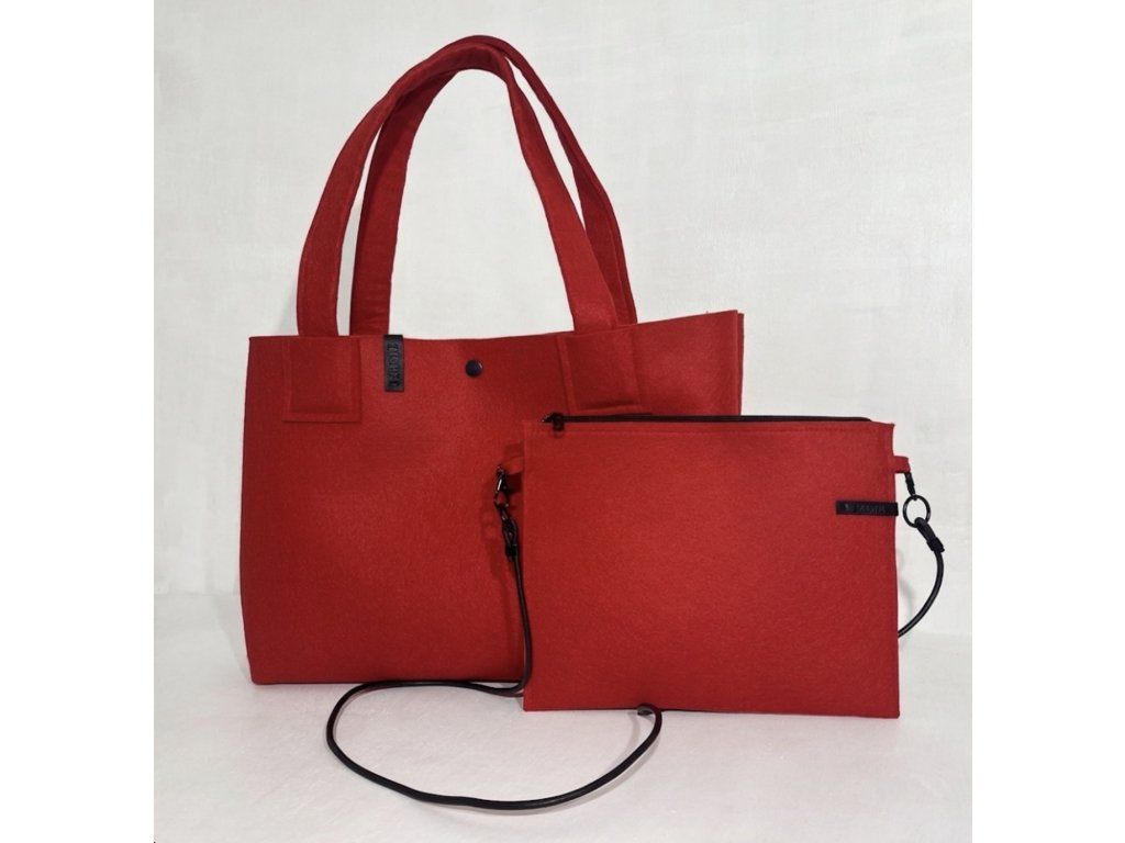 Praktický a prostorný set MAXI tašky a vnitřní tašky, která slouží jako vnitřní kapsa na drobnosti a důležité věci. Zároveň ji můžeš odepnout a vyrazit jen s telefonem, klíči a rtěnkou. Díky celokoženému popruhu ji můžeš vzít jako kabelku přes rameno. Je z pevného filcu, který pojme vše, co potřebuješ mít po ruce. Ideální společník na nákupy, do práce i na cesty.