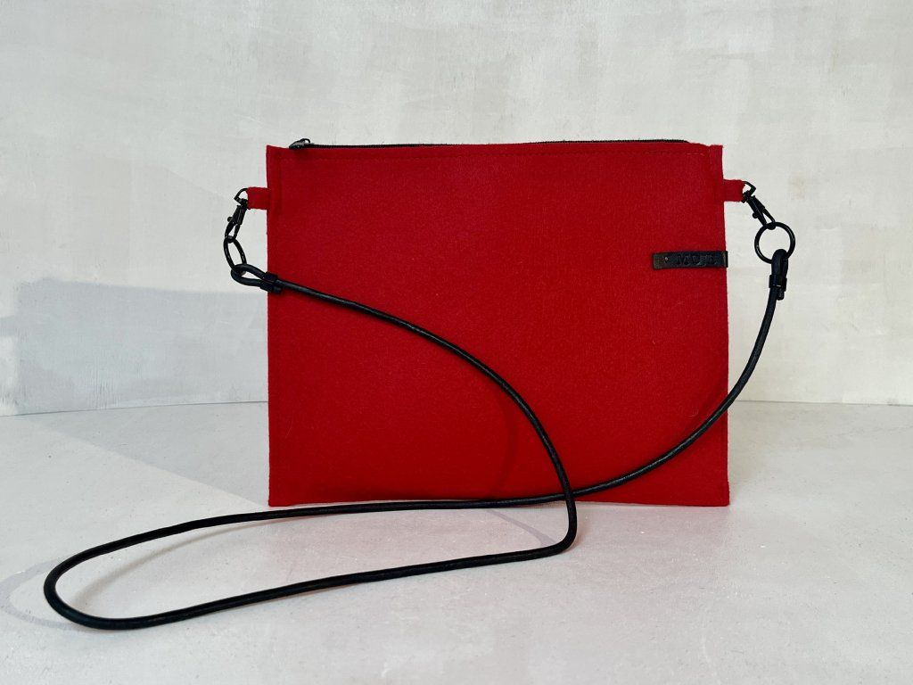 Filcová kapsa a crossbody taštička v jednom. Ideální jako vnitřní organizér pro vaši MAXI tašku nebo jako doplněk pro chvíle, kdy ti stačí jen mobil, klíče a rtěnka. Ušitá z kvalitního pevného filcu s elegantním koženým popruhem.